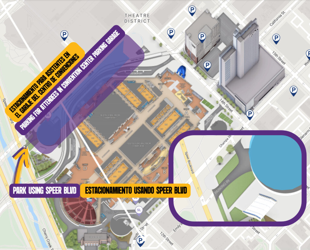 If you’ll be driving to the Summit, parking is available for attendees in the Colorado Convention Center Parking Garage. Please use the entrance to the garage located on Speer Blvd. As you are pulling into the garage please check in with the SEIU staff member to hand you a parking pass.Once parked, we’ll have someone to direct you to the correct area inside the Convention Center.
